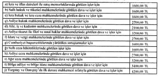 • Resmî kurumlar ve serbest çalışan bilirkişiler için belirlenen taban ücretler,